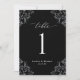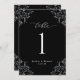 Números de Tabelas de Casamento Preto e Branco Elegantes: Use esses números de tabela clássicos e vintage na sua recepção de casamento ou evento. Este design apresenta a palavra "Mesa" em uma caligrafia elegante com um design de ornamentado vintage para um olhar luxo. Está definido em preto e branco, mas você pode mudar a cor para qualquer coisa que quiser! Basta clicar em "personalizar mais" e alterar a cor de fundo.