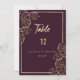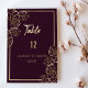 Um elegante Bordeaux, rico em vermelho e floral dourado, design de folha de ouro tropical com tipografia dourada escrita à mão. Estes convites de números de mesas de casamento de luxo são o impressão perfeito para qualquer evento de casamento de noiva e noiva. Personalize este design com seus detalhes e monograma inicial. Todas as designs são impressas.