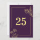 Placa simples de números de tabela exclusiva com flores de ouro românticas e elegantes em fundo roxo PARA MAIS PRODUTOS CORRESPONDENTES clique na coleção acima ou entre em contato comigo.