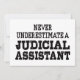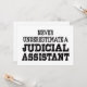 Legal design com a citação "Nunca subestime um assistente judicial". Perfeito para assistente judicial, funcionários, juízes, advogados, advogados, conselheiros.