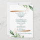Este convite de casamento é perfeito para um casamento simples e elegante ao ar livre. O design floral apresenta a Pintura em Aquarela Verde no Mar Profundo e as folhas de aquarela e o Texto a cores Dourado. Salve o papel, incluindo os detalhes na parte traseira do convite de casamento, em vez de em um cartão de cercado separado.