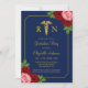 Nurse graduation with pink and red roses against a navy blue background. Gold caduceus and script typography. Photo template via Pixabay licensed under CC0 and must be replaced with your own photo.