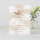 Convite de chá de bebê temático "estamos na nona nuvem" com ursinho bege elegante.