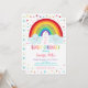 Convites Nuvens Arco-Íris Bebê Dourado Rosa