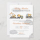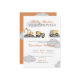 Um convite para o chá de fraldas "Baby under Construction", com nuvens de cinzas moles a cores, acentuado com elementos de construção lúdicos, como ferramentas e blocos de madeira em tons amarelos e castanhos quentes. Um design charmoso e caprichoso para uma celebração memorável.