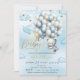 Urso de pelúcia com nuvens, estrelas, balão e lua. Esses convites para chuveiros de bebês são facilmente personalizados para seu evento simplesmente adicionando seus detalhes.
