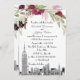 NYC Skyline Etch Olhe Preto Branco com Borda Floral de Plum Rosa Burgundy Blush - Convite de Casamento ============ Convites e acessórios personalizáveis com uma visão gravada a preto e branco do horizonte emblemático Nova Iorque com o Edifício Emp Rua e uma borda floral.======== 2020 ©NYNYINE CisMyMuse Todos os direitos reservados