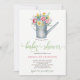 A rega ventiça pode ser feita com primavera e flores multicolorido de verão, fazer buquê um elegante convite para chás de fraldas rústicos. O cartão tem um fundo branco no lado frontal e um padrão geométrico no fundo verde (cor editável) no verso. Apresenta um roteiro de caligrafia de rico e uma moderna letra de texto contemporânea.— Ideal para uma festa de chá de chic no exterior, primavera de jardim ou no verão elegante. — Adequado para rapazes ou raparigas.