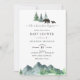 Chá de fraldas com montanhas de aquarelas, árvores, bebês e ursos. Personalize com suas informações ou clique em "clique para personalizar mais" para ajustar o tipo de fonte, o tamanho e a cor.