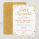 O brilho Dourado e o rosa, o azul e o amarelo polvilham o design de cartão moderno do convite do chá de fraldas.