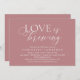 Placa de convite de festas de Script Elegante Moderno (O Amor é a Criação), no tema Dusty Rosa. Convide os convidados com este Cartão de Convite perfeito. É muito fácil adicionar/ editar com os detalhes da sua parte no chá de panela.