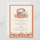 Chá de panela do tema do café. A xícara de café tem um coração de espuma! O copo é aninhado em flores bonito do outono e folhas de outono com um arranjo correspondente no fundo. A incrível caligrafia de script adiciona ao olhar. Que design maravilhosa para o seu chá de panela de café. Veja a coordenação de itens no nosso compro, Encantado Finch.