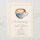Chá de panela de tema de café. A xícara de café tem um coração de espuma! A incrível caligrafia de script adiciona ao olhar. Que design maravilhosa para o seu chá de panela de café. Veja a coordenação de itens no nosso compro, Encantado Finch.