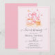 Chá de panela de tema de chá adorável. O conjunto de chá tem um bule e xícara cor-de-rosa junto com um cupcake bonito com coração. A ilustração do estilo aquarela é cercada por corações. A incrível caligrafia de script adiciona ao olhar. Que design maravilhosa para o seu chá de panela de festa de chá. Veja a coordenação de itens no nosso compro, Encantado Finch.