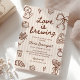 Celebre a noiva que está com este Amor é Criar Chá de panela Desenhado de Mão de Café. Apresentando rabiscos divertidos de copos de café, feijão, croissants, arcos e corações, este tema acolhedor inspirado no café adiciona um toque quente e caprichoso à sua celebração noiva. Perfeito para um chá de café chico ou brunch, este convite editável é uma na moda para honrar a futura Sra.