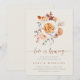 Apaixonem-se por estes convites românticos para as festas de noivado de outono, reuniões temáticas de café ou comemorações bruscas. O Elegante design apresenta um fundo quente esbranquiçado, graduado com um buquê de flores de cor d'água boho pastel, flanqueando um café com café perfeitamente preparado. "O amor é a criação" aparece em letras cursivas esboçadas; personalize com seus detalhes de festa de noivado embaixo em cinzas e letras terractas.