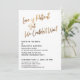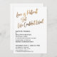 Convide seus convidados para a celebração do seu casamento com a ajuda desses simples cartões de convite. Para o cabeçalho, usei uma fonte manuscrita casual, moderna, para criar uma sobreposição de tipografia gráfica que diz "O amor é paciente, mas não pudemos esperar". Esta imagem foi adornada com um efeito de folha de ouro falso liso para um resultado festivo. Preencha os espaços em branco do modelo com seus detalhes para personalizar o design. Todas as camadas foram deixadas desbloqueadas para que você também possa clicar para personalizar ainda mais e reposicionar o texto ou até mesmo alterar tamanhos ou fontes. Altere o fundo para qualquer cor que preferir. Alternativamente, você pode optar por adicionar uma imagem ao verso. Por favor, não hesite em entrar em contato para obter assistência com a personalização.