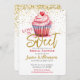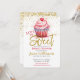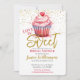 Um chá de panela ou um convite de festa de noivado lindo. Este convite fabuloso apresenta um cupcake de aquarela sobre um fundo de confete dourado. Fácil de personalizar com os seus próprios detalhes do festival.