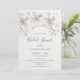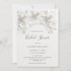 Este convite de chá de panela "O amor está em flor" apresenta rosas brancas 3D e uma citação do chá de panela em uma elegante escrita à mão sobre um fundo branco.