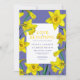 Bonito primavera amarelo narciso daffodil flores daffodil cores aquáticas pintura e gráfico azul quadro o amor está florescendo convites para o casamento. Arte botânica detalhada em bolbos florais de Primavera amarelo vivo, laranja, branco, primavera verde e azul roxo, ideal para um casamento de primavera. Outros itens correspondentes estão disponíveis. © Original watercolor art e design por Sarah Trett para www.mylittleedenweddings.com no Zazzle.
