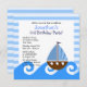 O aniversário azul do veleiro pequeno bonito convida 5,25"