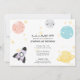 Simples e chique, este design do convite de aniversário é a maneira perfeita de convidar seu irmã, filha, ou chá de fraldas do amigo. Caracteriza um fundo da estrela e da constelação com os planetas bonitos do kawaii na parte dianteira e as estrelas e as constelações na parte traseira. Toda a tipografia cinzenta é variável caber suas necessidades do planeamento do partido. Tem os acessórios de harmonização para caber suas necessidades espaço-temáticos da celebração. Este design é perfeito para todo o partido não sexista.