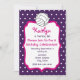 O convite de aniversário de uma menina que caracteriza um fundo roxo com as bolinhas brancas na parte dianteira e na parte traseira. A parte dianteira caracteriza o quadro cor-de-rosa brilhante com escrita roxa e cor-de-rosa. Ilustração do voleibol na parte superior.