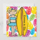 Nossos convites louros customizáveis do aniversário do surfista da menina são fáceis de personalizar com seus nome e informação do partido. Colorido e o verão temáticos, excelente para partidos nadadores, festas na piscina, o tema surfando parties!