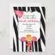 Dois, quatro, seis, oito. Come comemora com este convite bonito do aniversário do cheerleader. É ajustada em um fundo preto e branco do impressão da zebra. Ao longo do centro inferior é um cheerleader de cabelo louro que veste um uniforme vermelho que está guardarando poms do pom em suas mãos. Tem fitas em seu cabelo. Há um grande Tag branco no centro onde; você personaliza o convite com sua informação do partido. O canto de superior esquerdo é um megafone no rosa claro e quente com palavra "elogio" nele. Verifique para fora o muito outro design e cores em nossa loja. ilustrações do ©JW