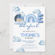 Celebre seu primeiro aniversário com este adorável convite com um ursinho de pelúcia sonolento descansando na lua, nuvens de azul macio e um arco-íris pastel. Um design perfeito sonhador e gentil para uma celebração de primeiro aniversario aconchegante e temerária. Totalmente personalizável para o seu dia especial!