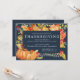 Um modelo jante de Ação de Graças muito colorido e fácil de personalizar. Uma variedade de folhas ouros amarelas e vermelhas escuras apresentam os detalhes do Janto de Ação de Graças. As luzes das cordas aumentam o brilho. Duas abóboras e bagas juntam-se à design festiva do outono. O texto branco em azul escuro é realmente pop.