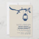 Um convite do casamento com um acampamento/fora tema que caracteriza uma ilustração de uma lanterna do óleo que pendura de um ramo de árvore com folhas. O esquema de cores é azul. Personalize o texto com detalhes de sua ocasião.