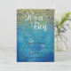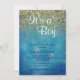 O brilho azul pintado bonito da textura e do ouro polvilha o convite do chá do bebé.