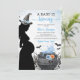 O convite apresenta uma bruxa, caldeirão e teias de aranha. Esta design é perfeita para um chá de fraldas de menino de Halloween.