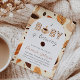 Celebre a chegada da sua pequena com este convite de chá de fraldas moderno e aconchegante "Um Bebê está a Criar". Esta design apresenta belos tons autunares, com uma charmosa xícara de café a aquarela e uma elegante tipografia. A paleta de cores castanho neutra a torna perfeita para um chá de fraldas neutro em termos de gênero ou para uma celebração de outono. Ideal para os pais amantes do café, este convite combina encanto rústico e design contemporâneo, criando uma atmosfera quente e convidativa para o seu dia especial.