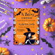 Feiticeira bonitinha do Halloween com um convite de modelo de chá de fraldas de pote de criação instantâneo. Bonito bruxa com pote que cria morcegos ranzinza marrom e tema negro