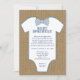O bebê rústico do laço polvilha o convite com a camisola branca. Todo o fraseio pode ser mudado. Veja para trás para o pedido do livro e a informação opcionais do raffle da fralda.