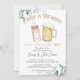 Uma garrafa pequena e uma grande, ambas prontas para serem preenchidas! 🍼 🍺 Este chá de fraldas apresenta um emparelhamento aquoso de uma garrafa de bebê e uma caneca de cerveja gelada, rodeada por leves folhas de eucalipto e tons de terra quente. O texto japonês gentilmente diz "Convite ao Chá de fraldas", perfeito para encontros relaxados, codificados ou com temas verdes! Criando amor infantil do Japão, Junko 🌿