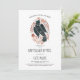 Um bébé balbuciano está a caminho do chá de fraldas por correio, apresentando uma ilustração artística de pássaros em terra cotta e preto com letras de estilo à mão. Estilo único neutro em termos de gênero.