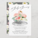 A na moda Baby Girl está a fazer design de chá de noiva com uma taça de cinza cheia de um buquê de peonias cor-de-rosa, sobre um fundo branco. Sacudir nosso design para ver uma floral coordenada de volta para um toque especial extra. Visite nosso compro para ver nossa coleção de chá.