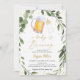Este convite apresenta cor-de-água verde com uma garrafa de cerveja e bebê e sotaques de folha de ouro.