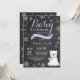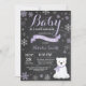 O Bebê É Frio Fora Do Urso Polar, Convite Para Chá de fraldas De Rapariga De inverno.Convite De Chá de fraldas. Chá de fraldas De Feriado De Inverno Convide. Flocos de neve roxos e brancos. Snowman e Chalkboard Background.
