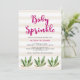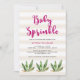Este bebê elegante e do divertimento polvilha ilustrações do cacto das características do convite, com a tipografia cor-de-rosa escura em um fundo listrado neutro, para um olhar glamoroso do deserto. Arte listrada do design Indie da benevolência.