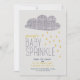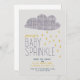 um bebê moderno do menino polvilha o convite que comemora uma mãe outra vez. caracterizando o portal transversal nuble-se e pingos de chuva na mostarda & no marinho.