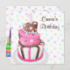 Bonito bolo de aniversário rosa rosa e garotas marrons primeiro convites de festas de aniversários.