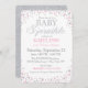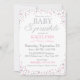 O brilho e o rosa de prata polvilham o design de cartão moderno do convite do chá de fraldas.