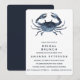 Celebre a futura noiva a ser antes do grande dia! Projetado para combinar com nossos convites e acessórios de casamento Seacavalo e Starfish. Este brunch náutico chic de noiva apresenta uma ilustração de Caranguejo desenhada ao estilo vintage em azul marinho. Perfeito para praia, verão ou casamentos náuticos. Este design faz parte de uma coleção, visite nossa loja para obter itens correspondentes. Para obter uma solicitação personalizada, entre em contato conosco em citronelladesign@gmail.com