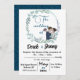 Elevem seu casamento com charme! Nossos convites encantadores de casamento apresentam noiva adorável e desenhos animados de noivo, harmonizados com tons azuis elegantes. Espera-se uma celebração encantadora.