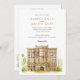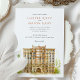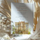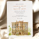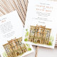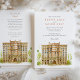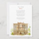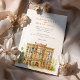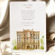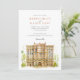 Convide seus convidados para uma celebração urbana sofisticada com este belo convite para casamento em aquarela, com o icônico Rookery Building em Chicago. O trabalho de arte captura a fachada detalhada do marco histórico, conhecida pela sua arquitetura peculiar castanho-avermelhado e terracotta Romanesque e ao estilo Comercial, feita num estilo de aquarela suave e refinado. Os tons quentes do prédio de castanho-avermelhado, ocre e bege são complementados por toques de azul-cinza nas vidraças. É graciosamente enquadrado pela folhagem estilizada: em ambos os lados, há manchas com folhas verdes claras, arredondadas e verde-amarelado alongado, juntamente com arbustos verdes e macios na base, acrescentando um toque de suavidade orgânica ao grandioso arquitetônico. Este convite é perfeito para casais que procuram um casamento clássico, arquitetônico e elegante em Chicago. A frente apresenta elegantemente seus detalhes de casamento, enquanto o lado inverso oferece "Os Detalhes Mais Finos" para informações de convidado.