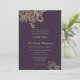 Flourish decorativo do casamento elegante roxo com os nomes de ambos os pais incluídos no fraseio. Convite formal do estilo.